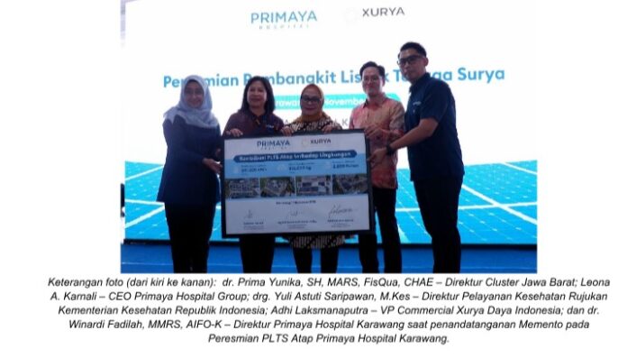 Fasilitas seluas 1.123 m² dengan kapasitas 164,7 kWp ini menjadikan Primaya Hospital Karawang sebagai rumah sakit pertama di Karawang yang mengintegrasikan energi surya sebagai sumber daya listrik alternatif. Peresmian turut dihadiri oleh drg. Yuli Astuti Saripawan, M.Kes, Direktur Pelayanan Kesehatan Rujukan Kementerian Kesehatan Republik Indonesia, H. Maslani, Wakil Bupati Karawang, Leona A. Karnali, CEO Primaya Hospital Group, dan Adhi Laksmanaputra, VP Commercial Xurya Daya Indonesia.