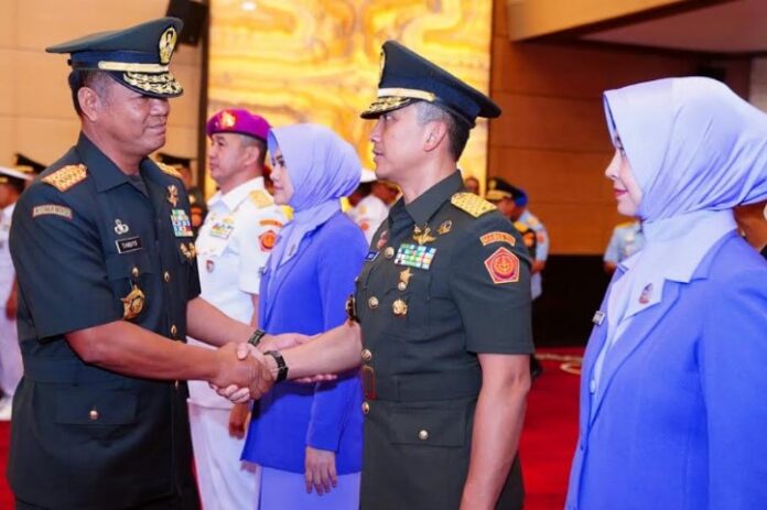 KORANBOGOR.com,JAKARTA-Wakil Panglima TNI Jenderal TNI Tandyo Budi R mewakili Panglima TNI Jenderal TNI Agus Subiyanto memimpin upacara serah terima jabatan (Sertijab) Komandan Pusat Misi Pemeliharaan Perdamaian (Dan PMPP) TNI, Kepala Pusat Penerangan (Kapuspen) TNI, dan Kepala Pusat Jasmani dan Peraturan Militer Dasar (Kapusjaspermildas) TNI. Kegiatan tersebut dilaksanakan di Aula Gatot Subroto, Mabes TNI, Jakarta Timur, Selasa (30/12/2025).