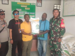 Babinsa Mapurujaya Dampingi Pendistribusian Beras Untuk Warga
