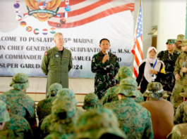 KORANBOGOR.com.SITUBONDO-Panglima TNI Jenderal TNI Agus Subiyanto bersama Komandan Komando Asia Pasifik AS Laksamana Samuel J. Paparo melaksanakan tatap muka bersama perwakilan pasukan Multinasional yang tengah berlatih bersama pada latihan Super Garuda Shield 2024, bertempat di Balai Prajurit Puslatpur 5...