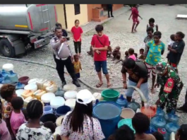Babinsa Koramil Mapurujaya Bantu Pembagian Air Bersih Kepada Warga Binaan