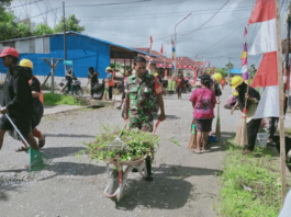 Sambut Kemerdekaan Republik Indonesia, Babinsa Koramil 1710-02/Timika Laksanakan Kerja Bakti Bersama...